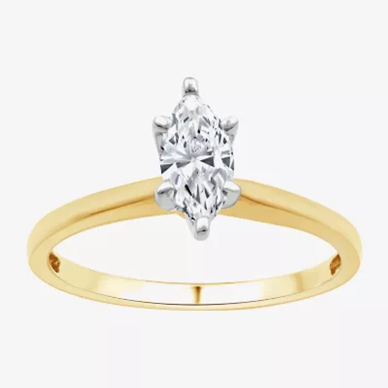 (G / Si1-Si2) Womens 3/4 CT. Lab Grown White Diamond 10K Gold Marquise Solitaire Engagement Ring