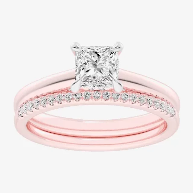 Love Lives Forever (G / Vs2-Si1) Womens 1 CT. T.W. Lab Grown White Diamond 10K Gold Side Stone 3-Stone Bridal Set