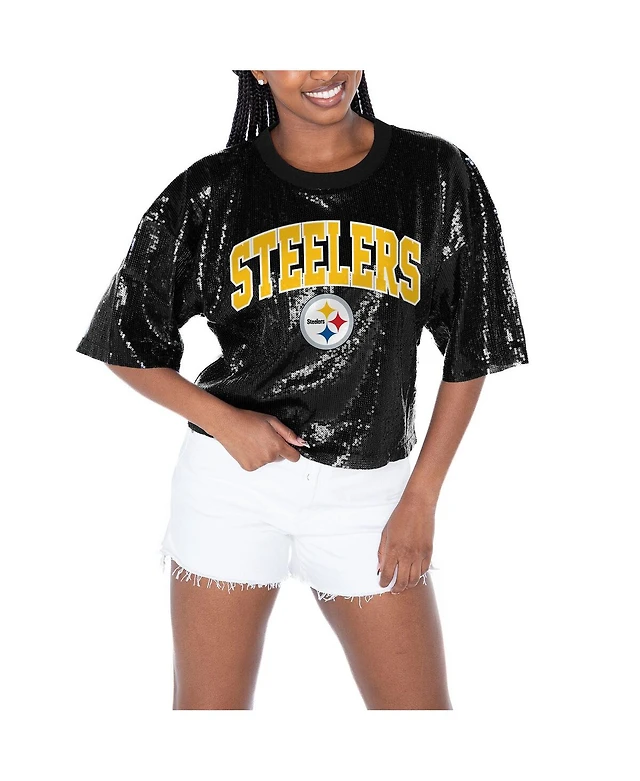 Gameday Couture Women's Black Pittsburgh Steelers Rise Up Sequin Cropped T-Shirt