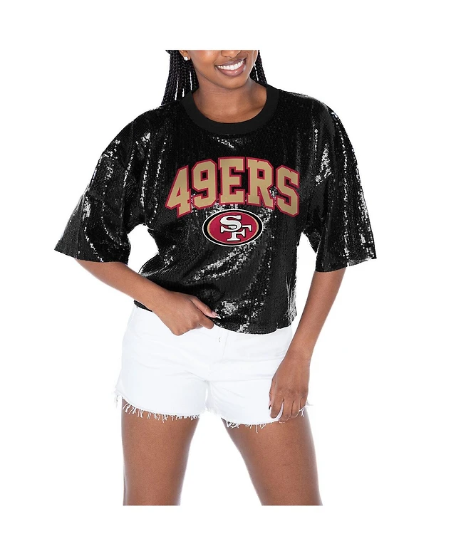 Gameday Couture Women's Black San Francisco 49ers Rise Up Sequin Cropped T-Shirt