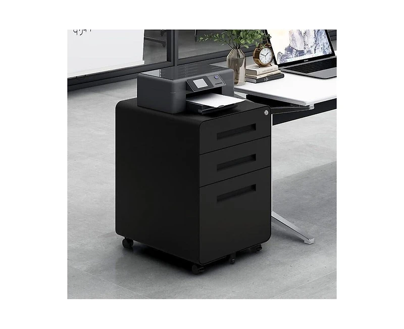 3 Drawer Mobile File Cabinet with lock, compact under-desk metal design suitable for home office storage and organization.