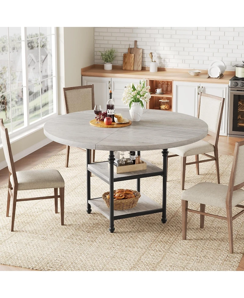 gaomon 4-Person 47" Round Farmhouse Dining Table with 2-Tier Storage