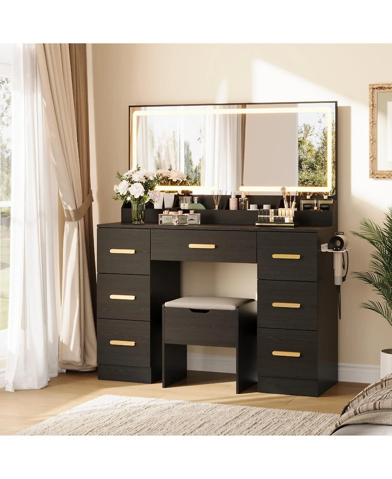 Step into your own personal glam room with this generously sized 45.9-inch makeup vanity desk. Built for beauty enthusiasts who need extra space, this expansive dressing table features a massive mirror framed by brilliant Led lights to provide professional-grade illumination. The wide tabletop gives you plenty of room to spread out your tools, palettes, and skincare routines. Engineered for stability and designed for easy assembly, this large beauty station is a fabulous and highly functional focal point for master bedrooms or dedicated dressing rooms.