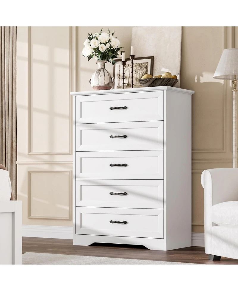 gaomon 5 Drawer Dresser for Bedroom, Wooden Tall Chest with Wide Metal Handle, Farmhouse Modern Storage Organizer