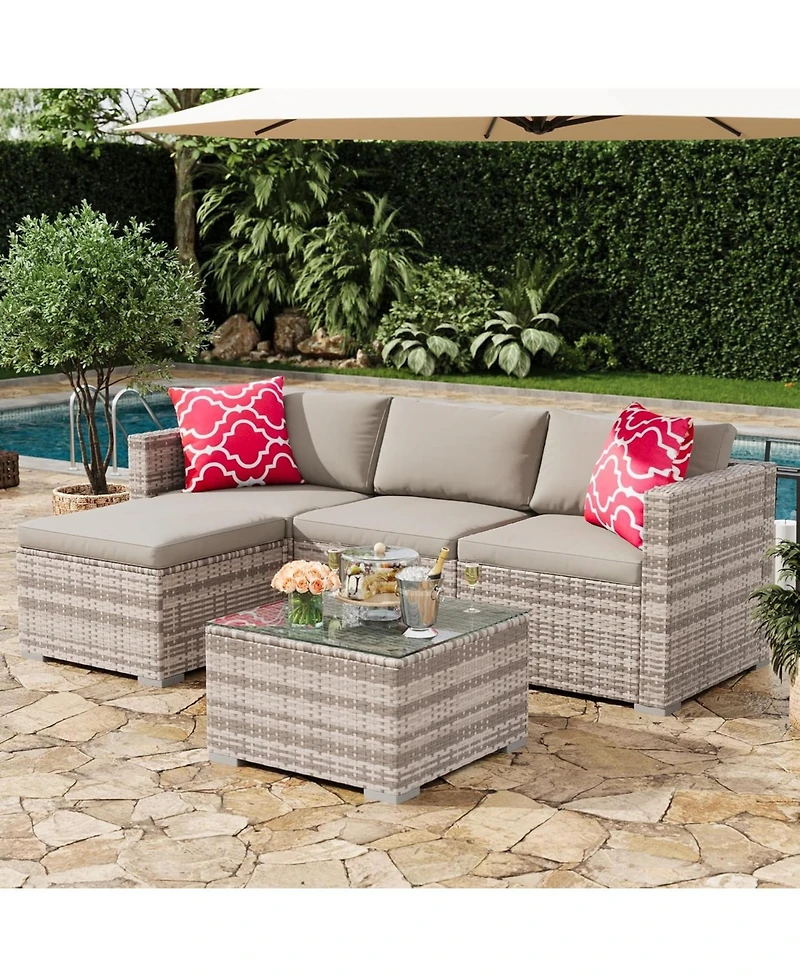 gaomon 5-Piece Outdoor Sectional Sofa Set, All-Weather Pe Rattan Patio Furniture with Ottoman and Tempered Glass Table in Ponce, PR