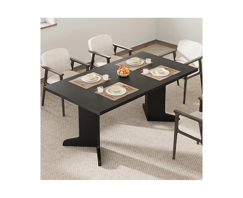 Stylish V-shaped legs provide stability and a modern farmhouse look, enhancing your space with both function and attractive design.6-8 Person Farmhouse Rectangular Dining Table with V-Legs