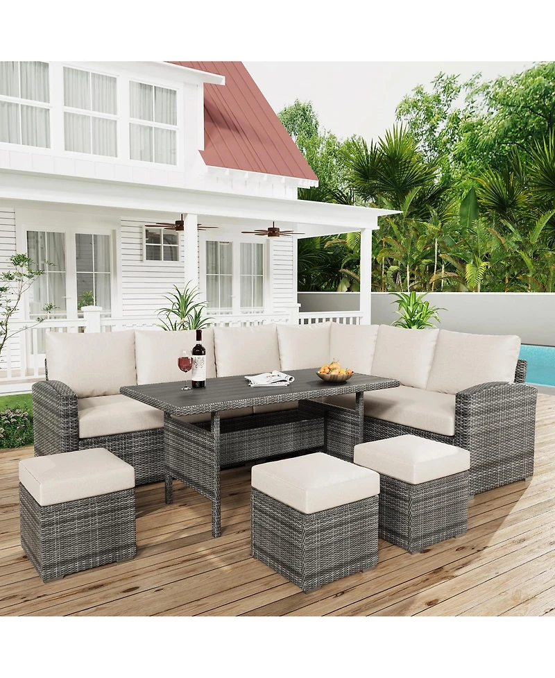 Gaomon 7-Piece Outdoor Patio Set with Wicker Rattan Dining Table
