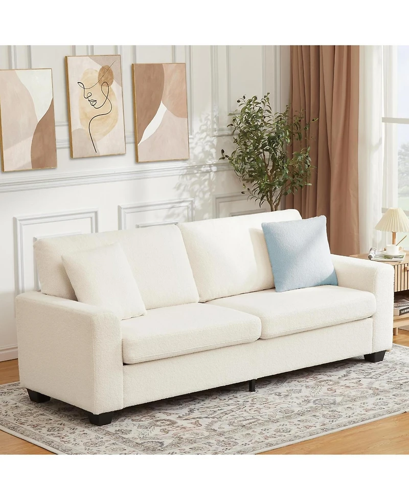 Upgrade your living space with this 83-inch modern 3-seater sofa, designed for ultimate comfort and contemporary style. Featuring a deep seat design and plush cushioning, this cloud couch provides a cozy and supportive lounging experience-perfect for relaxing, reading, or movie nights.Upholstered in premium teddy fleece fabric, this sofa offers a soft, skin-friendly texture that feels warm and inviting. The durable material resists pilling and wear, maintaining its smooth appearance and comfort over time while adding a stylish, cozy touch to your home.With its spacious seating, this oversized loveseat comfortably accommodates up to three people without feeling crowded. The deep seat and high-resilience foam cushions provide excellent support and long-lasting comfort for daily use or gatherings with family and friends.