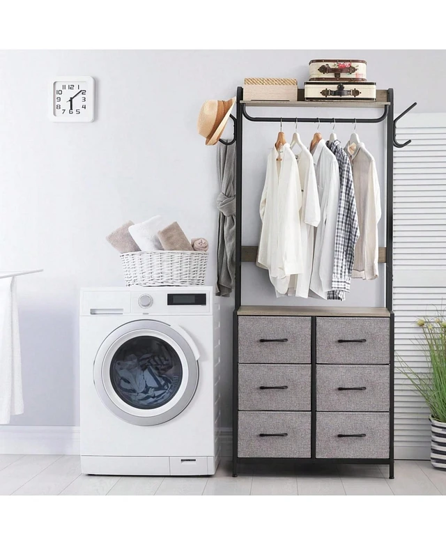 gaomon Clothing Rack With 4/6 Drawers, Freestanding Closet Organizer, Clothes Stand Dresser With Steel Frame & Wooden Top