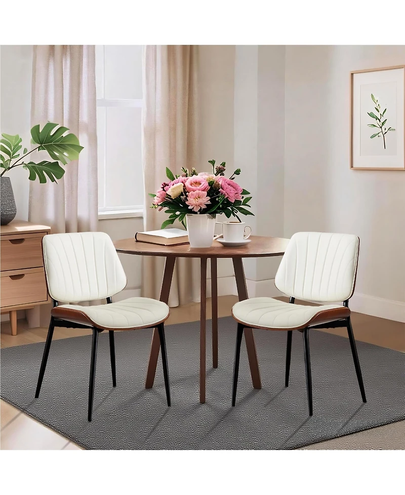 Elevate your home decor with these upholstered dining chairs. Featuring shell-patterned Pu leather and sleek black metal legs, their curved backrest and padded seat bring retro sophistication. Ideal for dining rooms, kitchens, living rooms, and offices, the space-saving design tucks easily under tables.Dining Chairs Set of 2, Modern Pu Leather Upholstered Accent Chairs with Striped Design