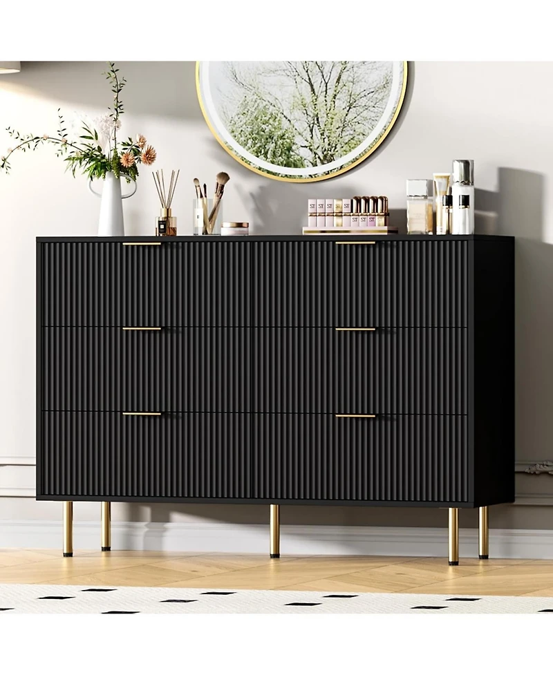 [Modern Fluted Panel Design] - With modern fluted waveform panel design,the storage dresser looks more artistic. Sleeky surface and fluted panel add elegance and aesthetics in your home.[Sturdy and Durable Construction] - Crafted from sturdy Mdf board and reinforced thickened base,this drawers dresser is built to last and not easy to deform.Metal handles and slides allow you push and pull drawers effortlessly.[6 Drawers Large Capacity] - The drawer dresser has 6 large-capacity drawers,it measures 22.8" L x 12.8" W x 4.6" H. It can provide ample storage space for spice jars, tableware, toys, and books, clothes, makeup, and more.[Hassle-Free Assembly] - Comes with detailed instructions and all hardware needed for installation,the chest dresser can be easily assembled in short time.If there are any product problems,please feel free to contact us.[Multifunctional Usage] - The drawer dresser has elegant.
