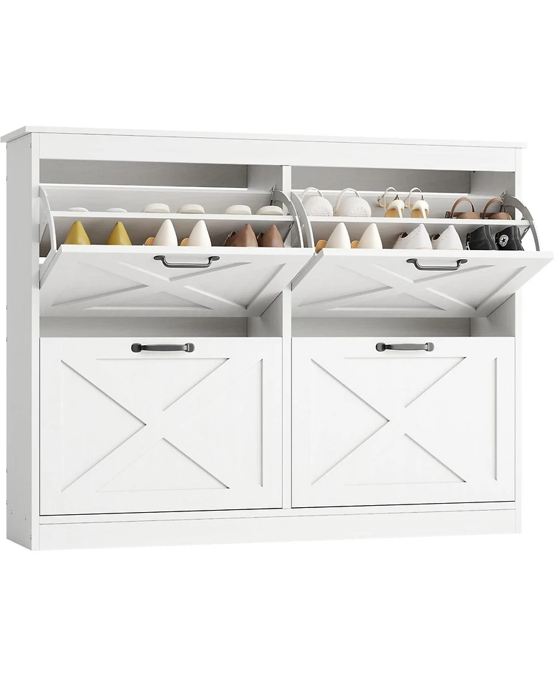 Versatile Shoe Organizer: This shoe cabinet for entryway features four upper and lower flip drawers, each with double layered storage. Ideal for busy households, it keeps shoes organized and essentials like keys or wallets easily accessible on the spacious top