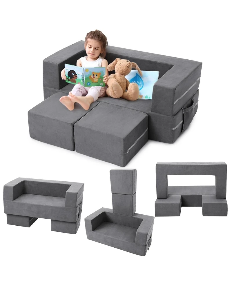 gaomon Kids Couch 3PCs Modular Play Couch, Toddler Convertible Sofa Foam Floor for Children, Bed Creative Set