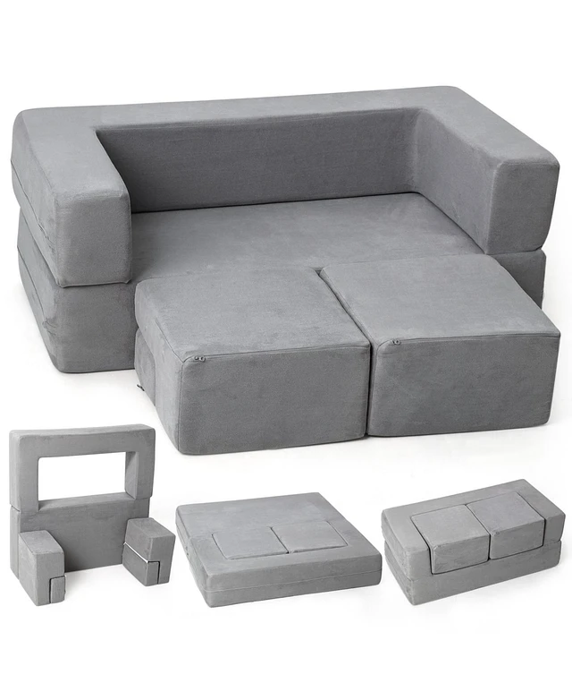 Costway 6 Pcs Kids Play Sofa Set Modular Convertible Foam Folding Couch Toddler Playset