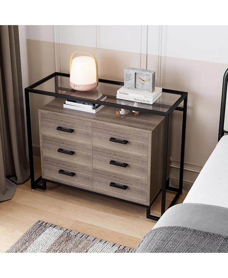 gaomon Kitchen Pantry Cabinet with Glass Doors, 6 Drawers, Microwave Rack, Versatile Storage, Mobile Casters, Dining Room Organizer
