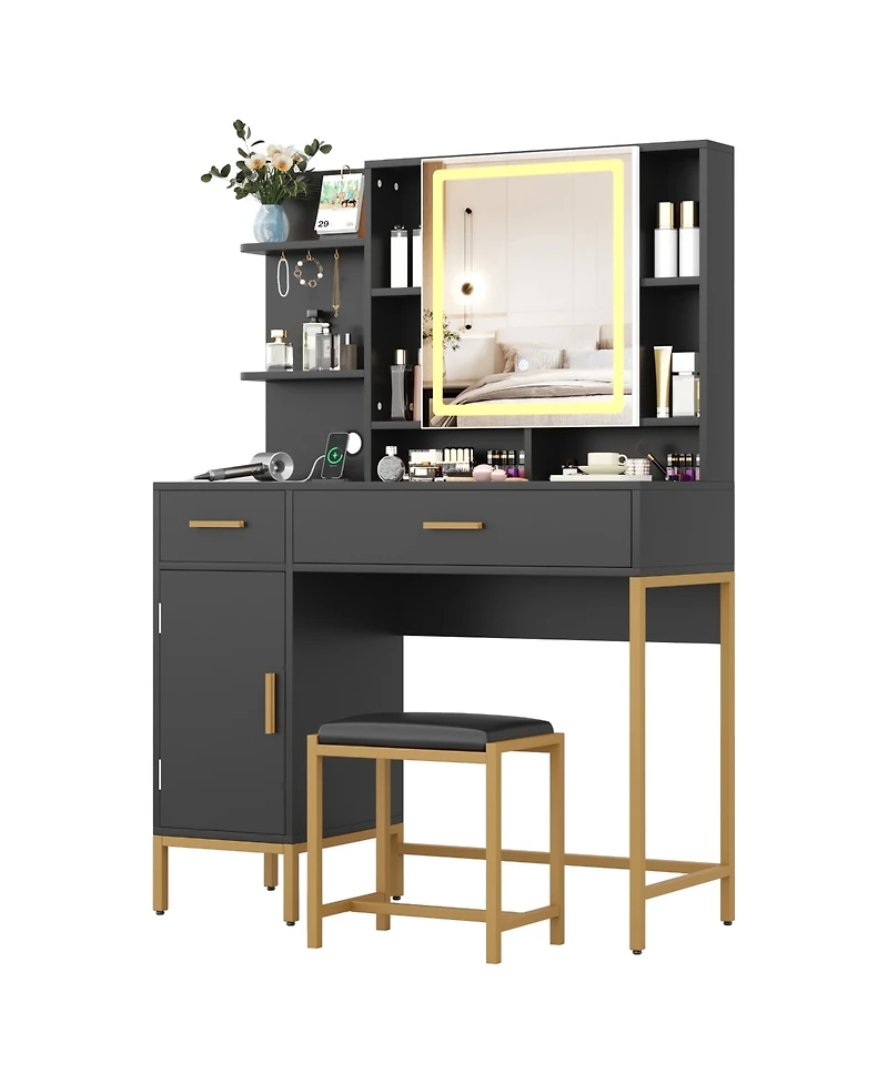 Gaomon Makeup Vanity Desk with Led Lighted Mirror and Charging Station