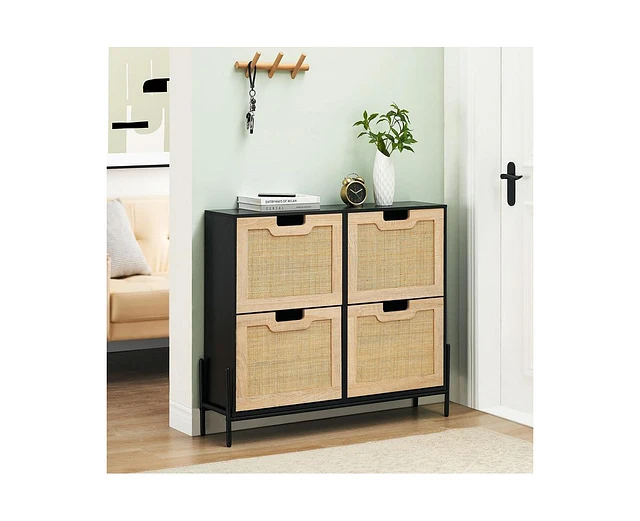 gaomon Natural Rattan Shoe Storage Cabinet, Freestanding Shoe Cabinet with 4 Flip Drawers, Modern Shoe Organizer with Adjustable Shelves, Ideal for Fr