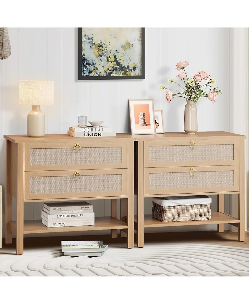 Gaomon Rattan Nightstand Set of 2, Boho Nightstand with 2 Drawers and Storage Shelf in Ponce, PR