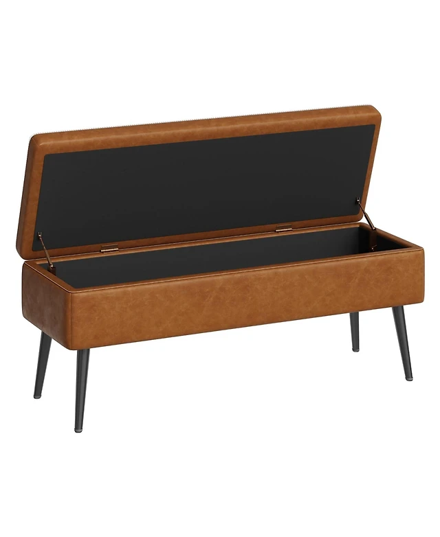 gaomon Storage Ottoman Bench, End of Bed Bench with The Stitching and Synthetic Leather, Dual Safety Hinges, 660 Lbs Load, Upholstered Storage Bench f