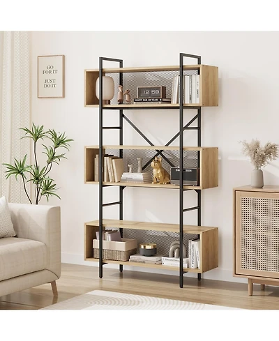 Garmin Bookshelf 5 Tier Industrial Wood, Tall Open Rustic Etagere Bookcase Ladder, Standing Display Shelves for Home Living Room Bedroom Office