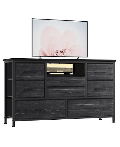 gaomon 10 Fabric Drawers Dresser, Entertainment Center Tv Stand with Power Outlet & Led Light for 45"-55" Tv, Chest of Drawers for Bedroom