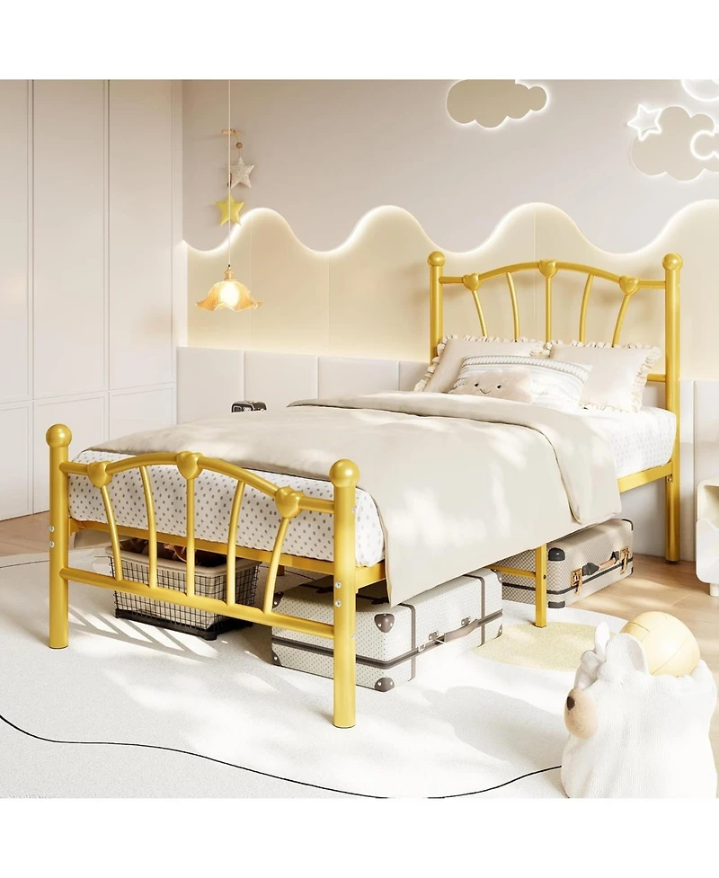 gaomon Twin Metal Bed Frame, Frames for Girls, Platform with Heart-Shaped Design Headboard&Footboard in Ponce, PR