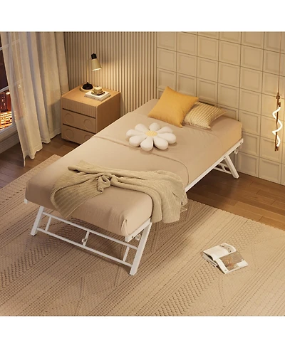 gaomon Twin Size Pop Up Trundle Bed Frame, Foldable Metal Platform, Lockable Casters