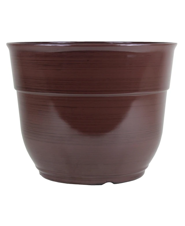Garden Elements Glazed Brushed Happy Large Plastic Planter Dark 15 Inch
