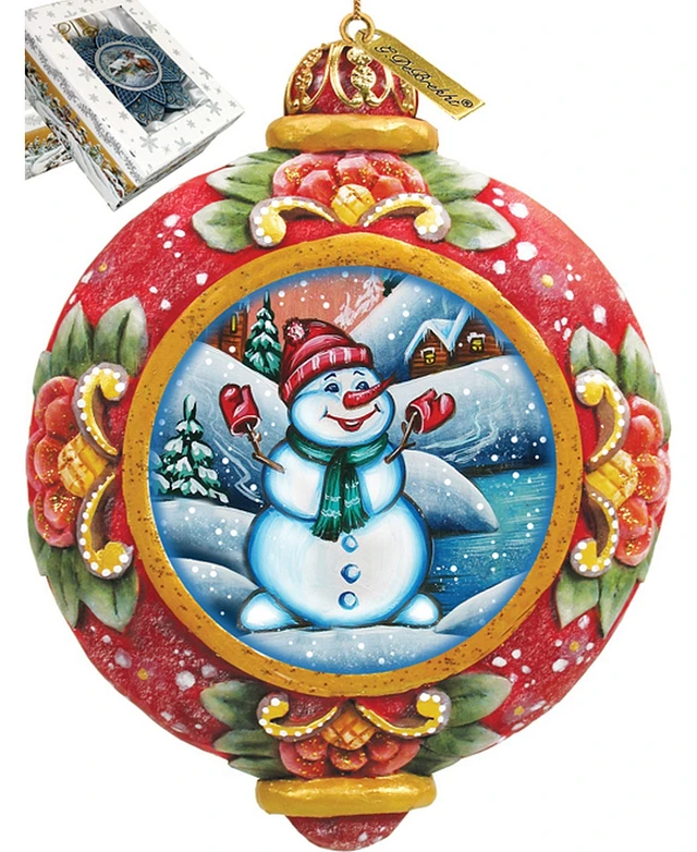G.DeBrekht Hand Painted Scenic Ornament Snowman