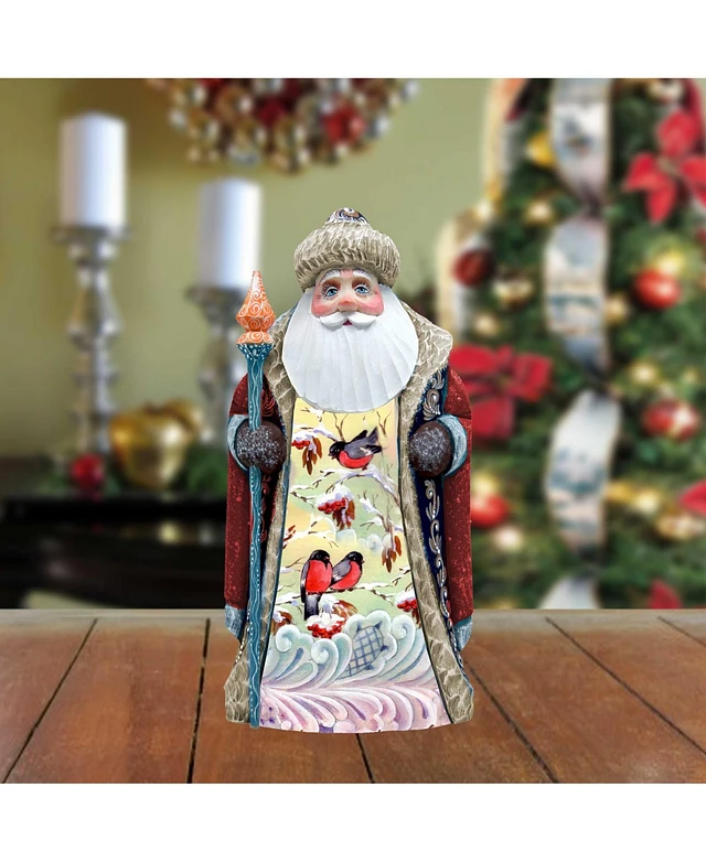 G.DeBrekht Winter's Morning Bird Chirping Santa Wood Carved Holiday Figurine