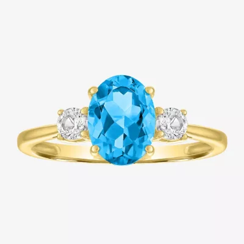 Gemstone 10K Gold 3-Stone Oval Cocktail Ring