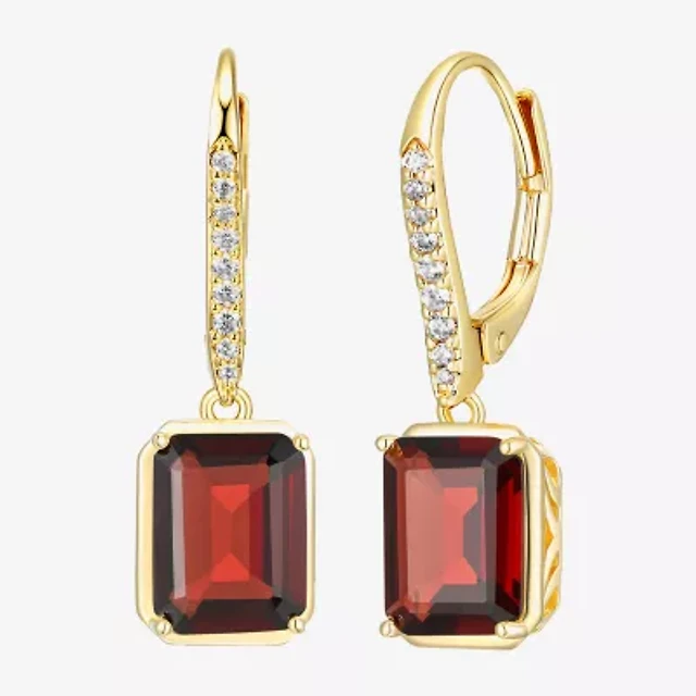 Gemstone 14K Gold Over Silver Cushion Drop Earrings