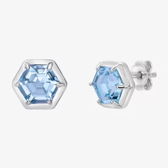 Gemstone 10K White Gold 6mm Round Stud Earrings