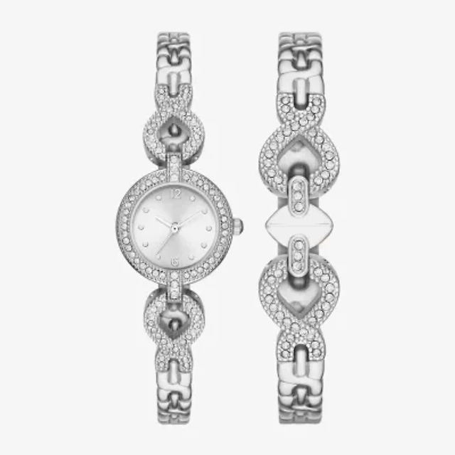 Geneva Womens Crystal Accent Silver Tone 2-pc. Watch Boxed Set Fmdjset061