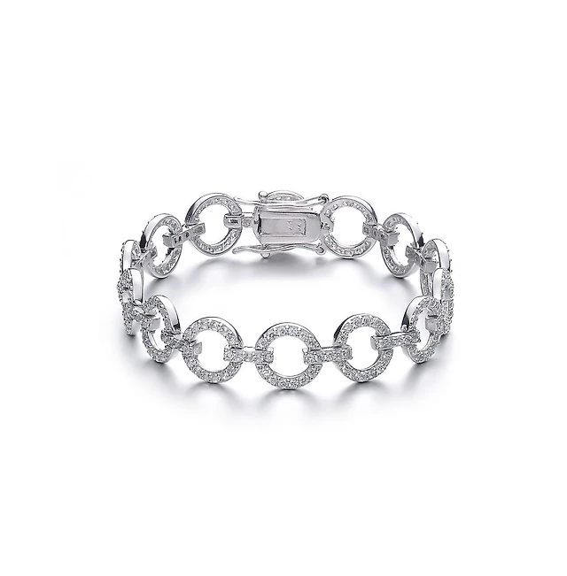 Genevive Sterling Silver Cubic Zirconia Circle Link Bracelet