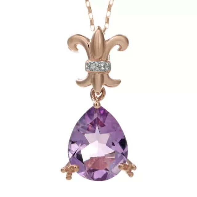 Genuine Amethyst and Diamond-Accent 10K Rose Gold Filigree Drop Pendant Necklace