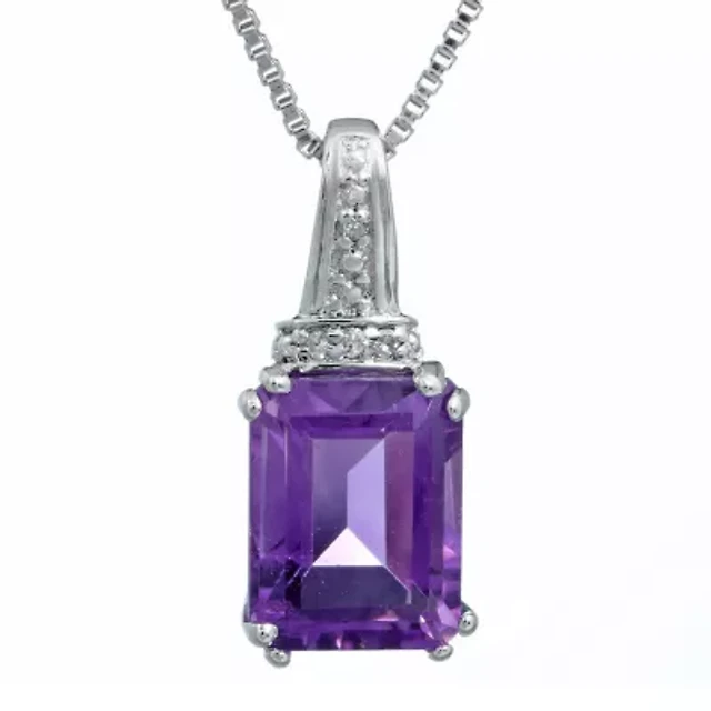 Genuine Amethyst and Diamond-Accent 10K White Gold Pendant Necklace