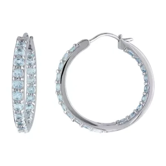 Genuine Aquamarine Sterling Silver Inside-Out Hoop Earrings