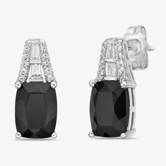 Genuine Black Onyx Sterling Silver 11mm Cushion Stud Earrings