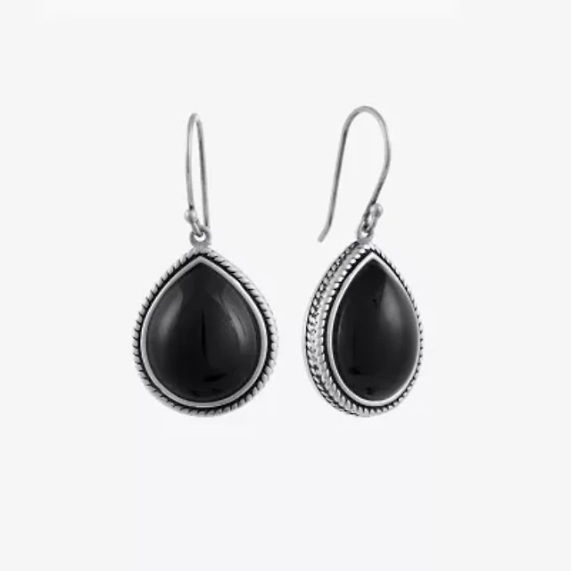 Womens Genuine Black Onyx Sterling Silver Drop Earrings