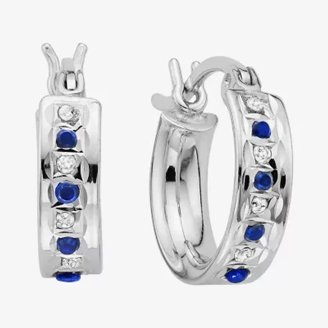 Womens Lab Created Blue Sapphire Sterling Silver 15mm Hoop Earrings