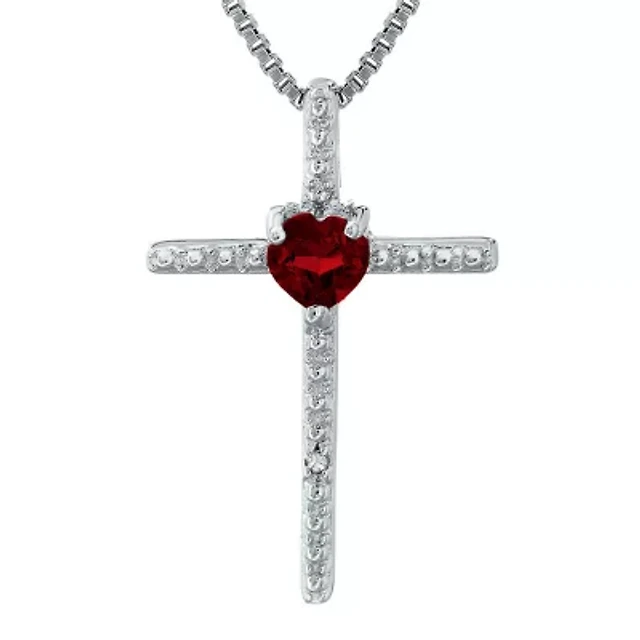Womens Genuine Red Garnet Sterling Silver Cross Heart 18 Inch Pendant Necklace
