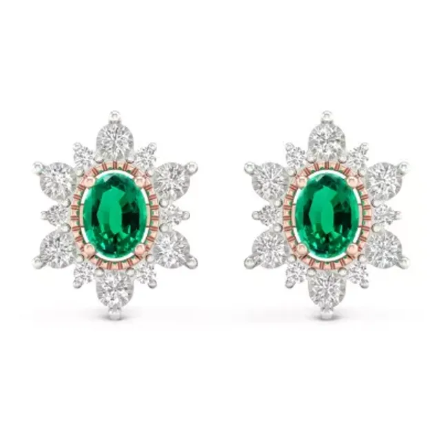 Emerald (3/4 ct. t.w.) & White Topaz (1/3 Flower Stud Earrings 10k Gold