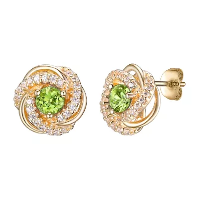 Genuine Green Peridot 18K Gold Over Silver 15.5mm Round Stud Earrings