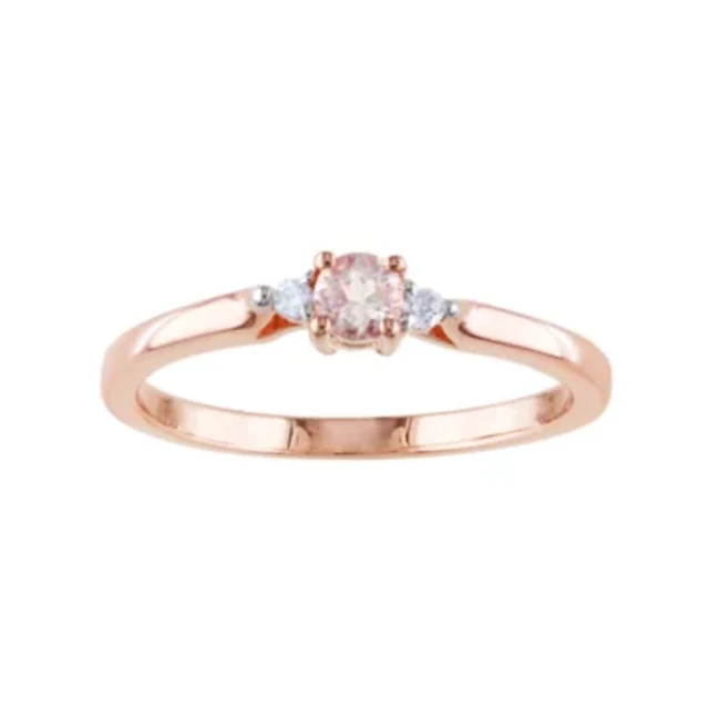 Womens Diamond Accent Genuine Pink Morganite 14K Rose Gold Cocktail Ring