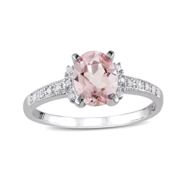 Genuine Morganite and Diamond-Accent Sterling Silver Ring
