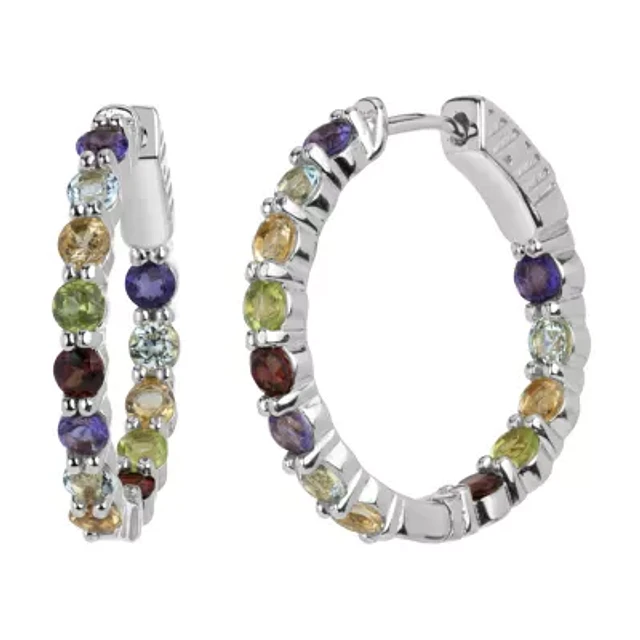 Genuine Multi-Gemstone Sterling Silver 24.6mm Hoop Earrings