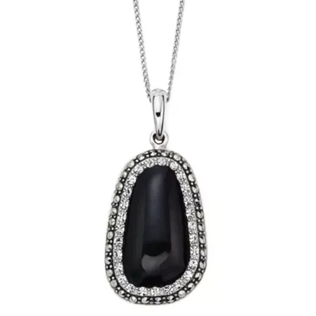 Genuine Onyx and Marcasite Sterling Silver Pendant Necklace