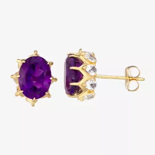 Genuine Purple Amethyst 10K Gold 10mm Stud Earrings