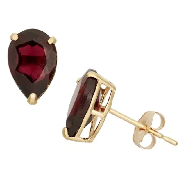 Genuine Red Garnet 10K Gold 9mm Pear Stud Earrings